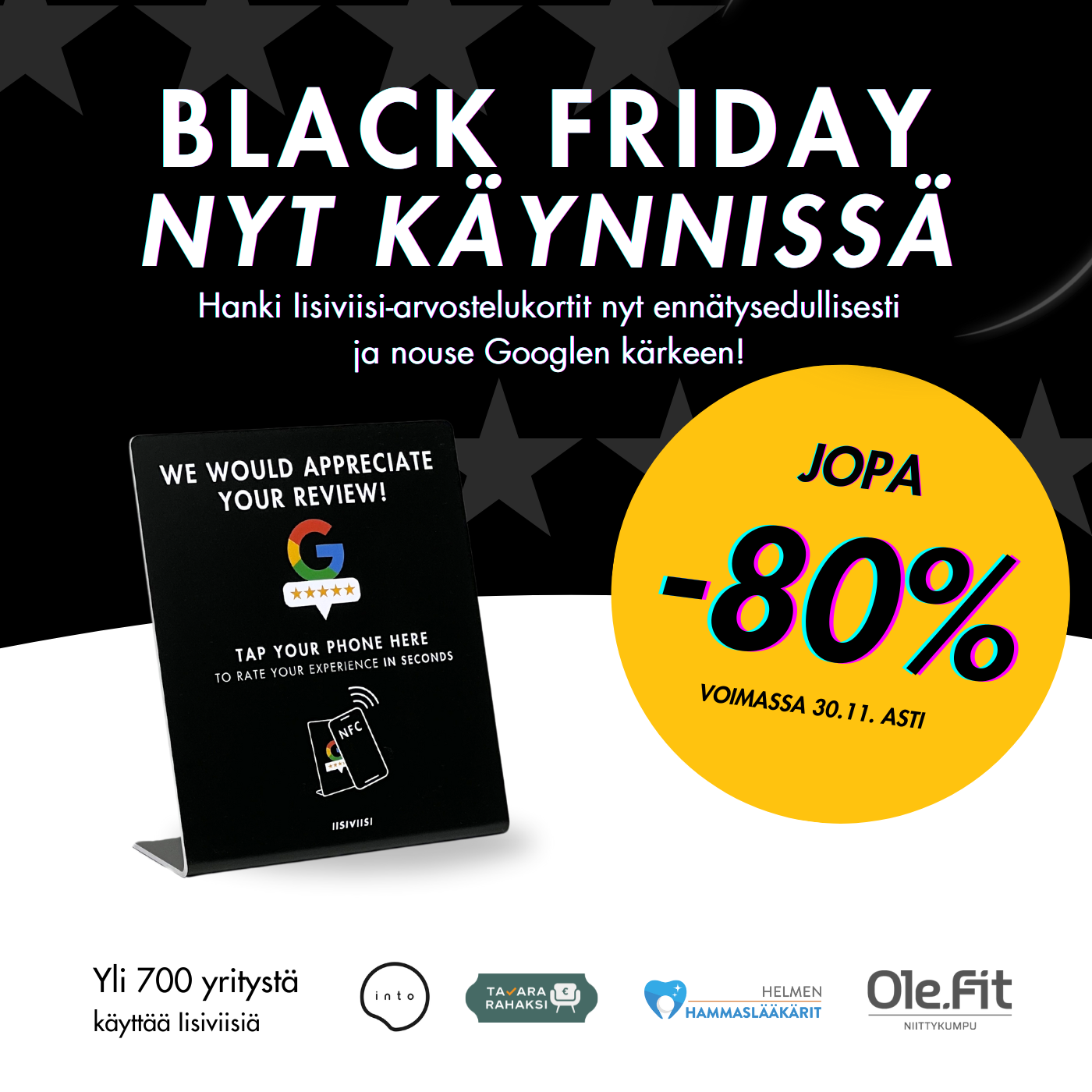 Iisiviisi toimii NFC-sirulla, joka valmiiksi ohjelmoitu yrityksesi arvostelulinkkiin.