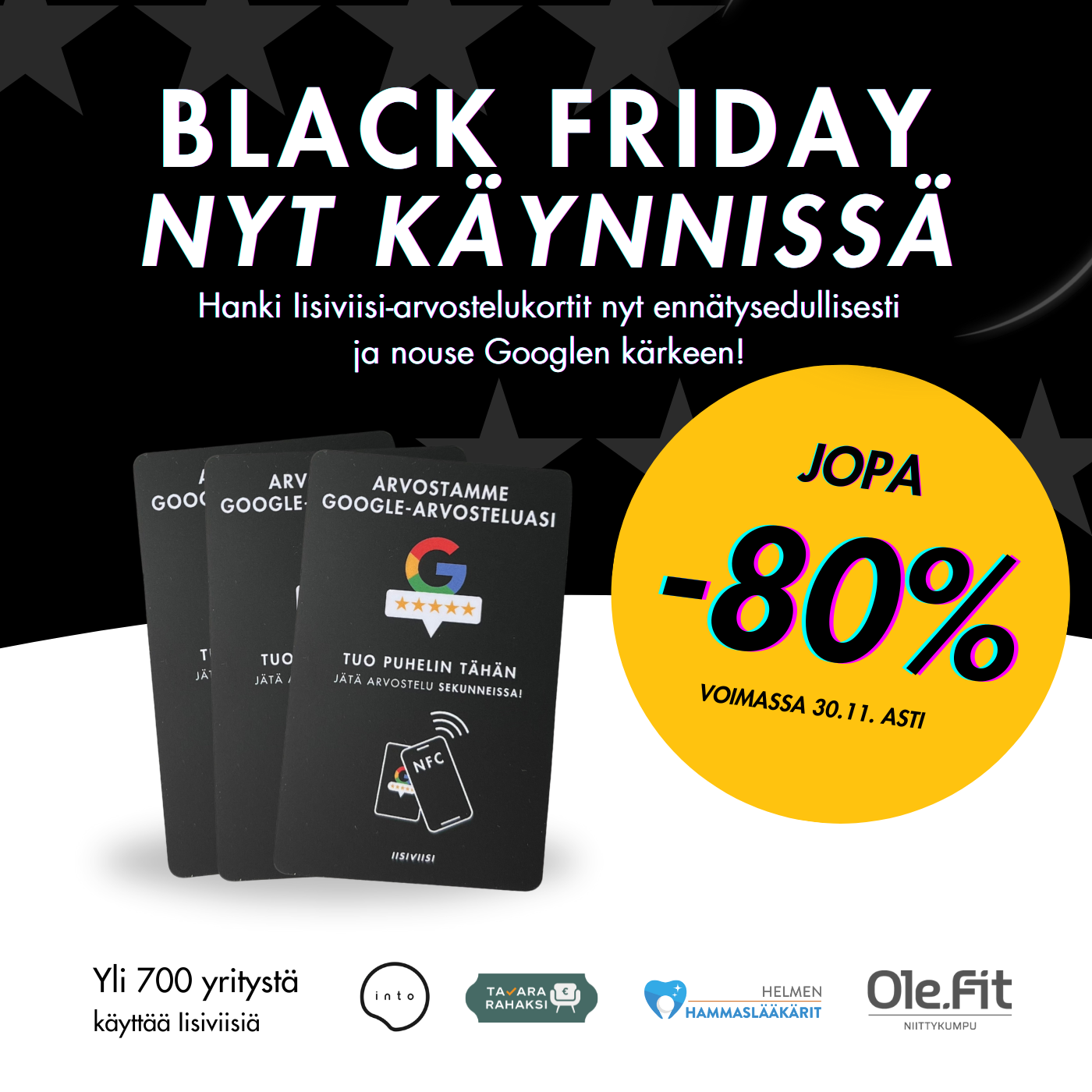 Iisiviisi toimii NFC-sirulla, joka valmiiksi ohjelmoitu yrityksesi arvostelulinkkiin.